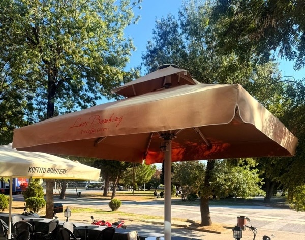 Cafe, restoran ve otel bahçeleri için şık ve fonksiyonel şemsiye sistemleri. Merkezi ve yan direkli modeller.
